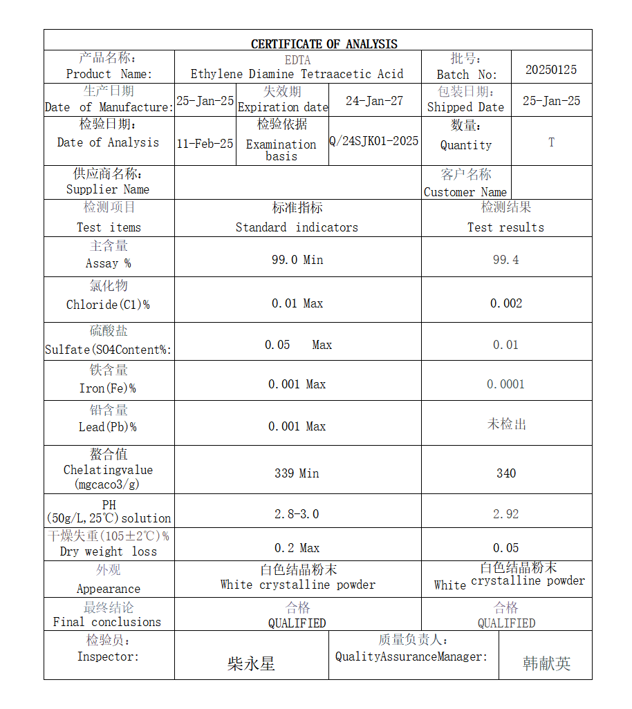 英文名称:Ethylenediaminetetraaceticacid