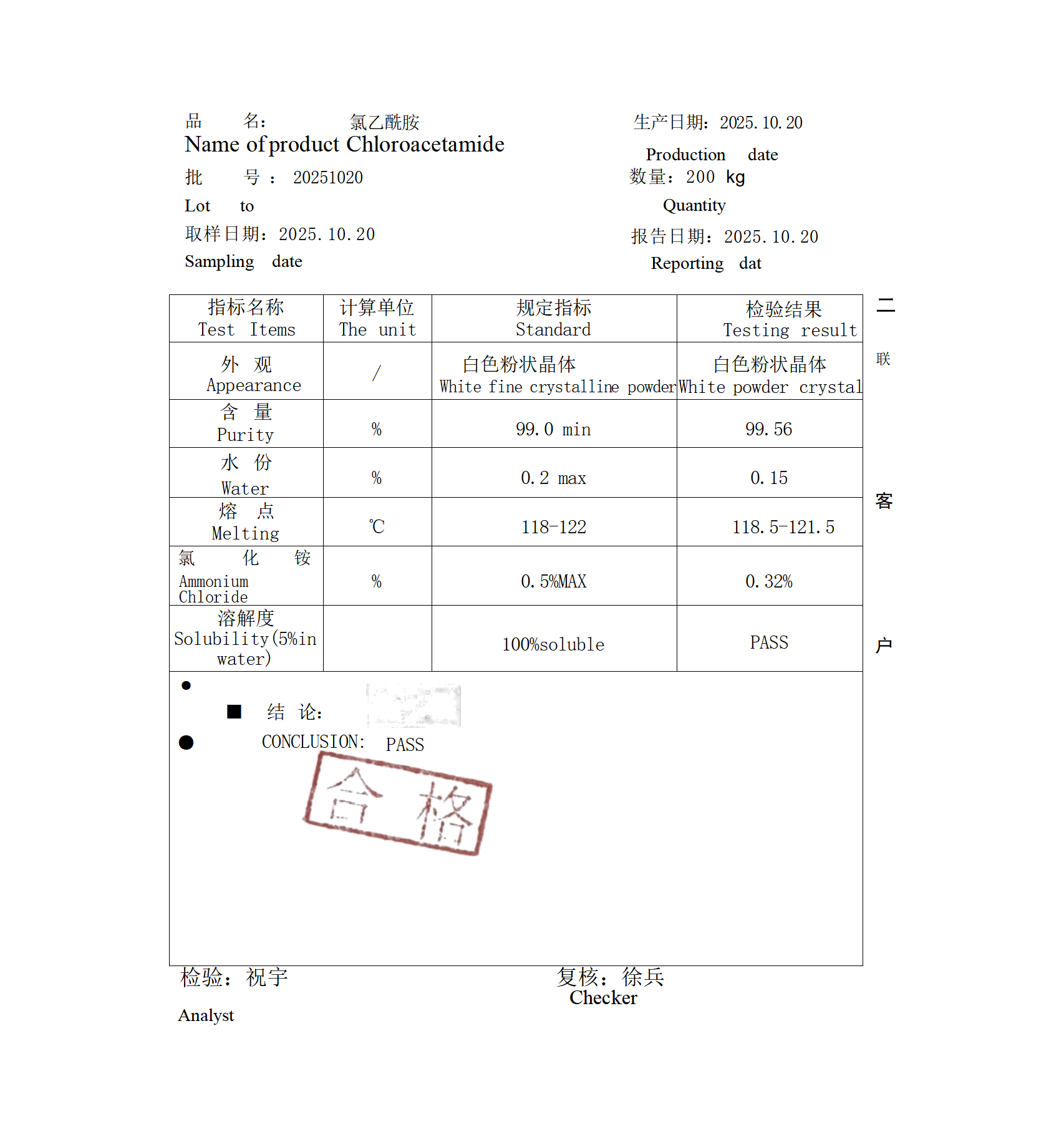 > 氯乙酰胺 纯度99% 白色粉状晶...