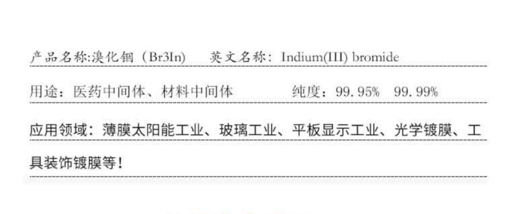 工业级溴化铟主要应用于半导体材料制备、有机合成催化及电子器件等领域,具体包括: