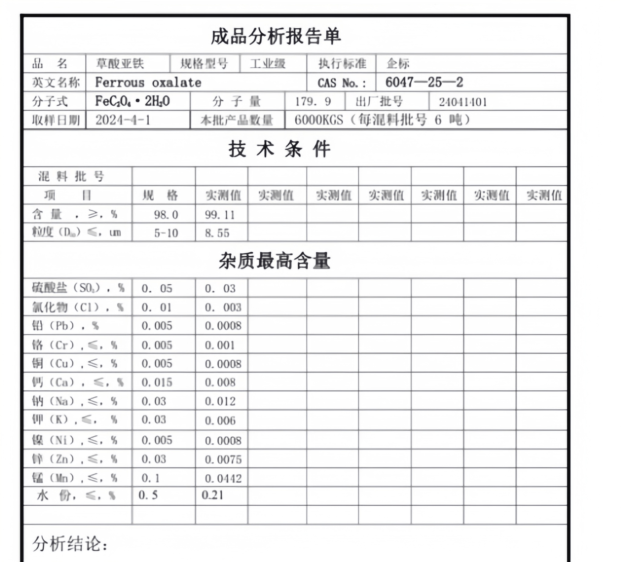 工业级草酸亚铁主要应用于电池材料、化工原料、感光材料及制药工业等领域,具体用途如下: