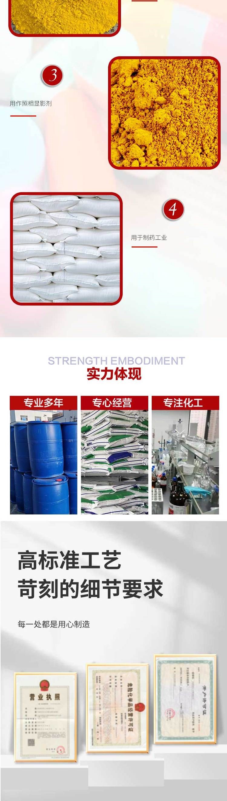 加热分解产物可作照相显影剂,在新型感光材料中发挥光敏作用。