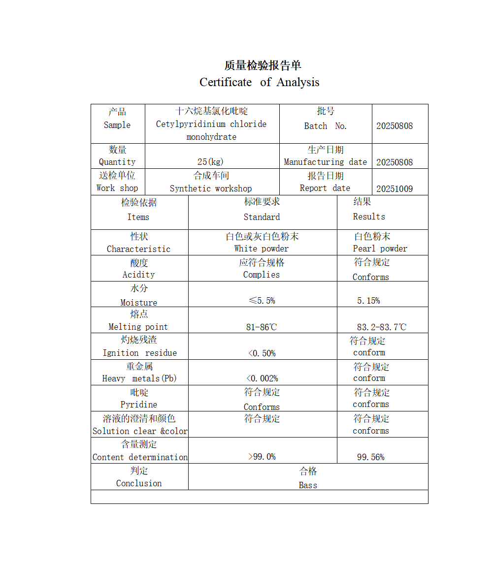 外文名:cetylpyridiniumchloride