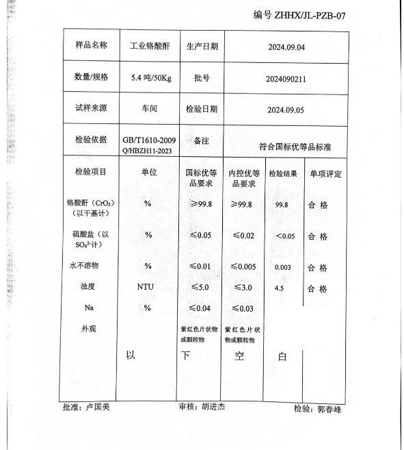 - 化工:用于制备高纯金属铬、氧化铬绿、锌铬黄颜料,以及铬酸盐的制造 。
