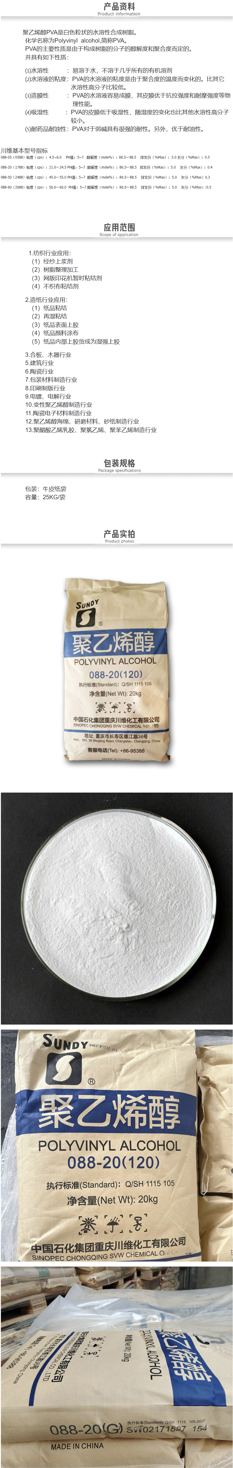 聚乙烯醇088-20是一种重要的化工原料,具有粘合力强、成膜性好、水溶性适中等特点,广泛应用于多个工业领域。
