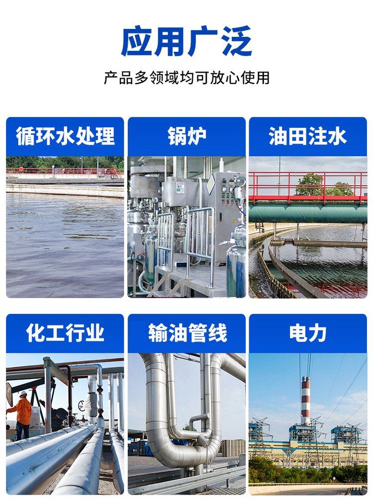- 阻垢:抑制碳酸钙垢形成,适用于循环冷却水、低压锅炉、油田注水及输油管线等系统 。