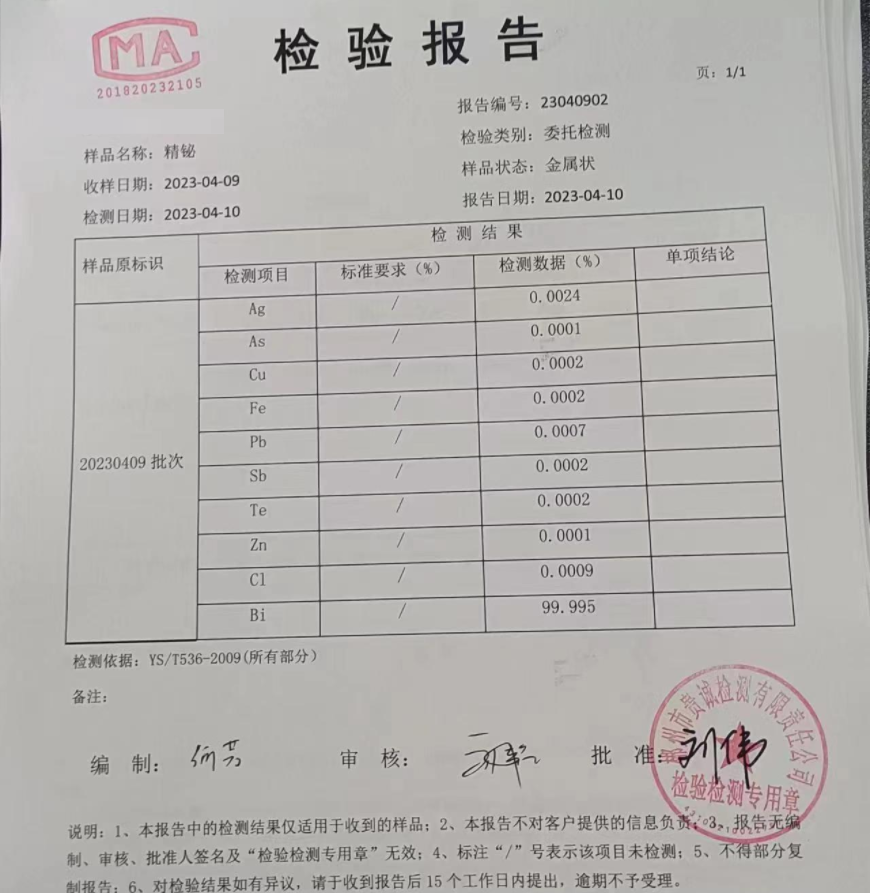 > 工业级铋锭 纯度99.99% 制造合...