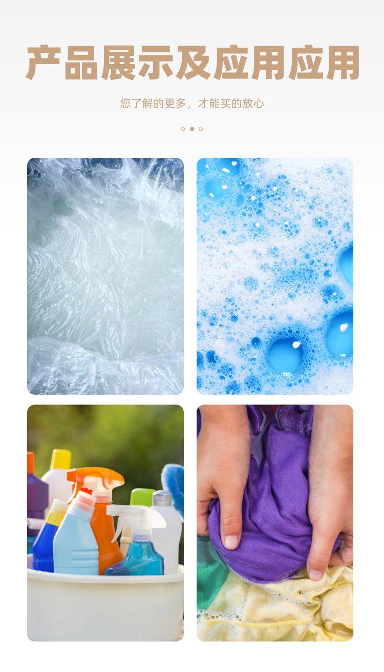 - 清洗剂:用于轻纺工业中金属和非金属的清洗,去除污垢和氧化层。