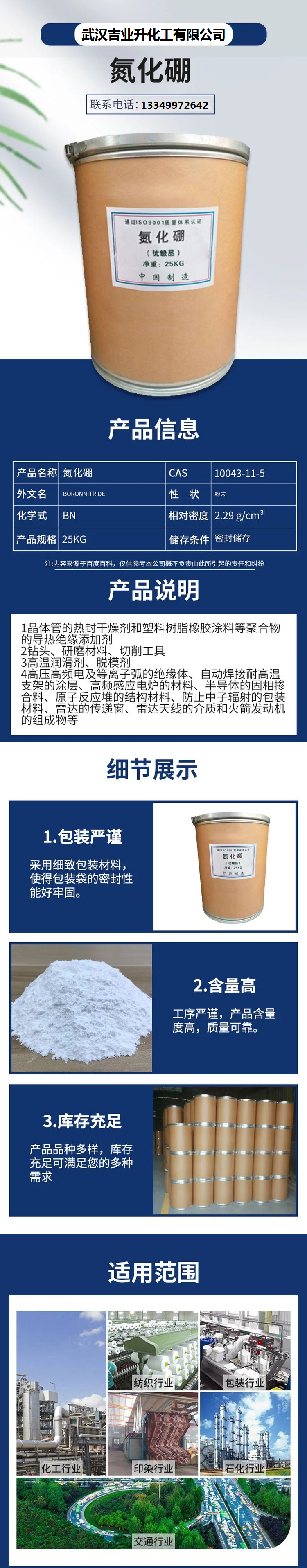 3.高温固体润滑剂,挤压抗磨添加剂,生产陶瓷复合材料的添加剂,耐火材料和抗氧化添加剂,尤其抗熔融金属腐蚀的场合。