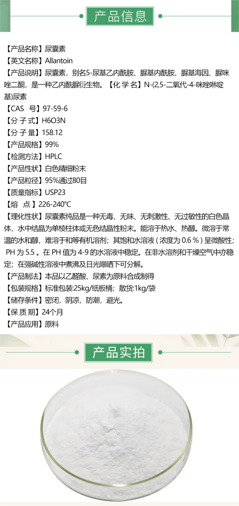 - 产品名称日化级尿囊素 含量98% 美容美发化妆品 日化添加剂 洗发露 cas97-59-6