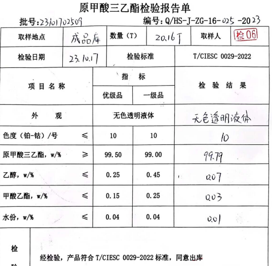- 产品名称原甲酸三乙酯 含量99% 无色透明液体 有机合成中间体 羰基保护剂 cas122-51-0