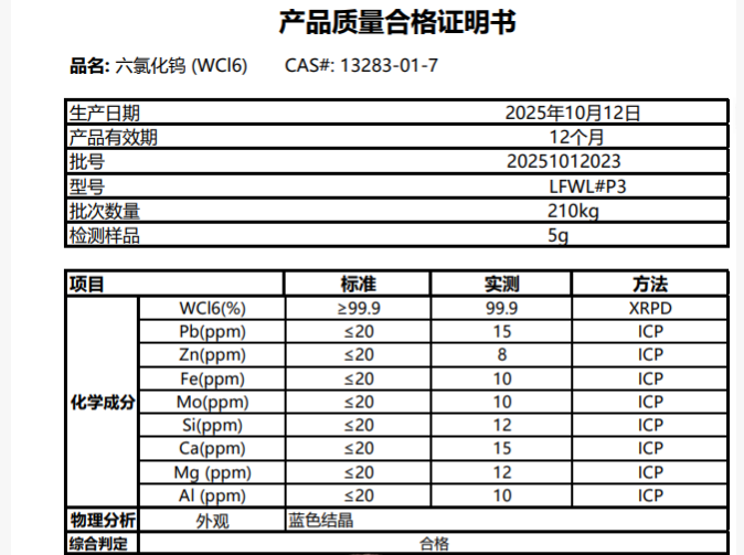 六氯化钨产品说明书